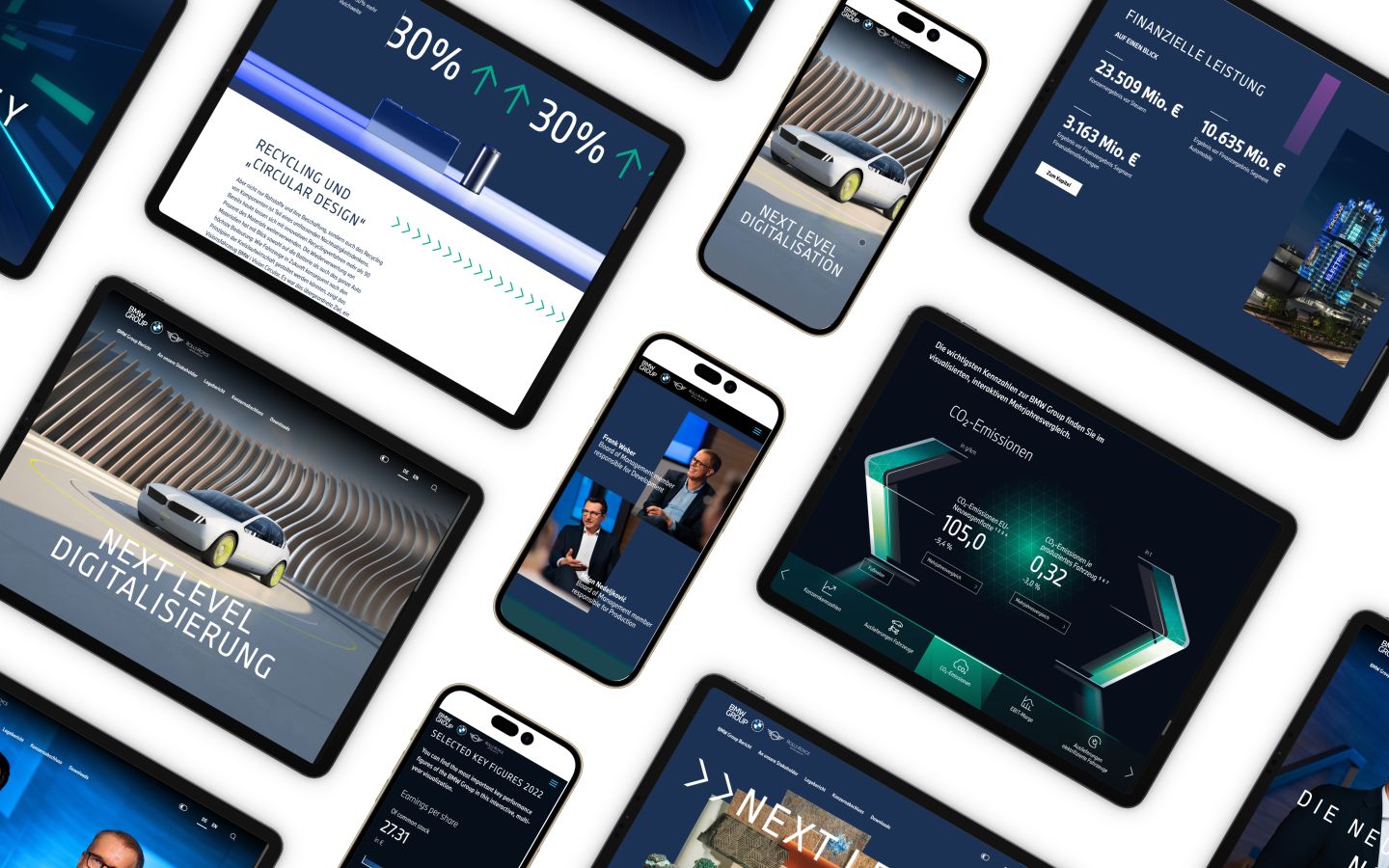 Digital, elektrisch und zirkulär: Diese Leitthemen bilden die Basis, mit welcher der BMW Group Bericht 2022 die nächste Stufe erklimmt. Mit dem Motto „Next Level Mobility“ zeigt das Unternehmen, dass es seine Mobilitätsvision in die Tat umsetzt und seinen Weg konsequent beschreitet. Konzept und Design wurden dabei von 3st entwickelt.
