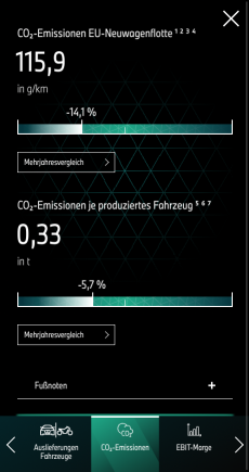 Zahlenwerk mit Cockpit-Feeling: Die wichtigsten Kennzahlen finden sich in einem visualisierten, interaktiven Mehrjahresvergleich, den der User im Cockpit-Design eines rein elektrischen BMW erlebt – inklusive Originalsound.