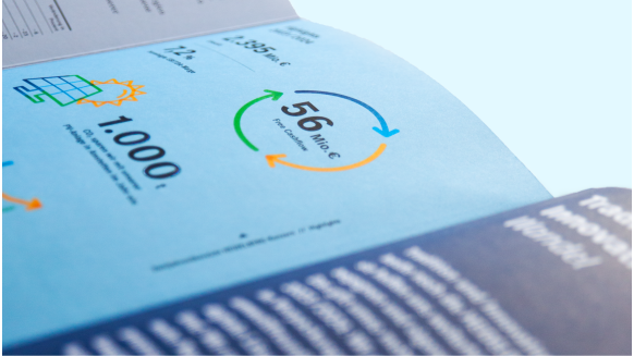 Liebhaber*innen gedruckter Produkte merken: Recyclingpapier und Fadenheftung sorgen für ein perfektes Aufschlagverhalten – nicht nur im Vorstandsinterview.