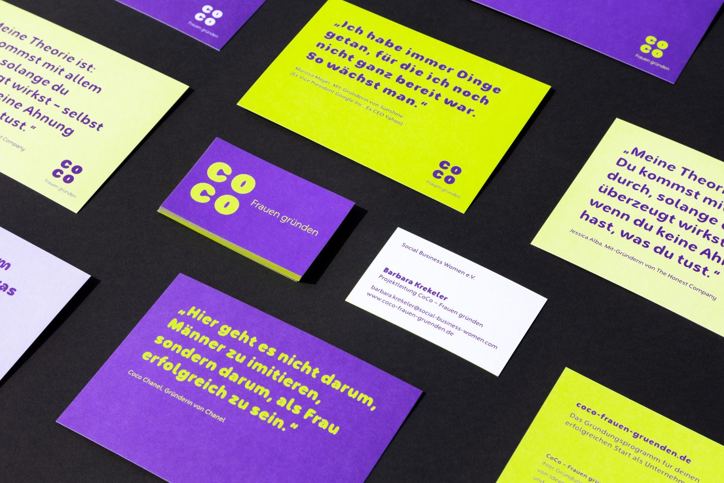Mutig sein. Träume verwirklichen. Zukunft gestalten. Female Empowerment steht im Fokus des Programms „CoCo – Frauen gründen“, gefördert von Social Business Women und der KfW Stiftung. Unser frisches, positives Branding übersetzt den Charakter von CoCo authentisch ins Visuelle und sorgt mit dafür, dass aus Frauen Unternehmerinnen werden.