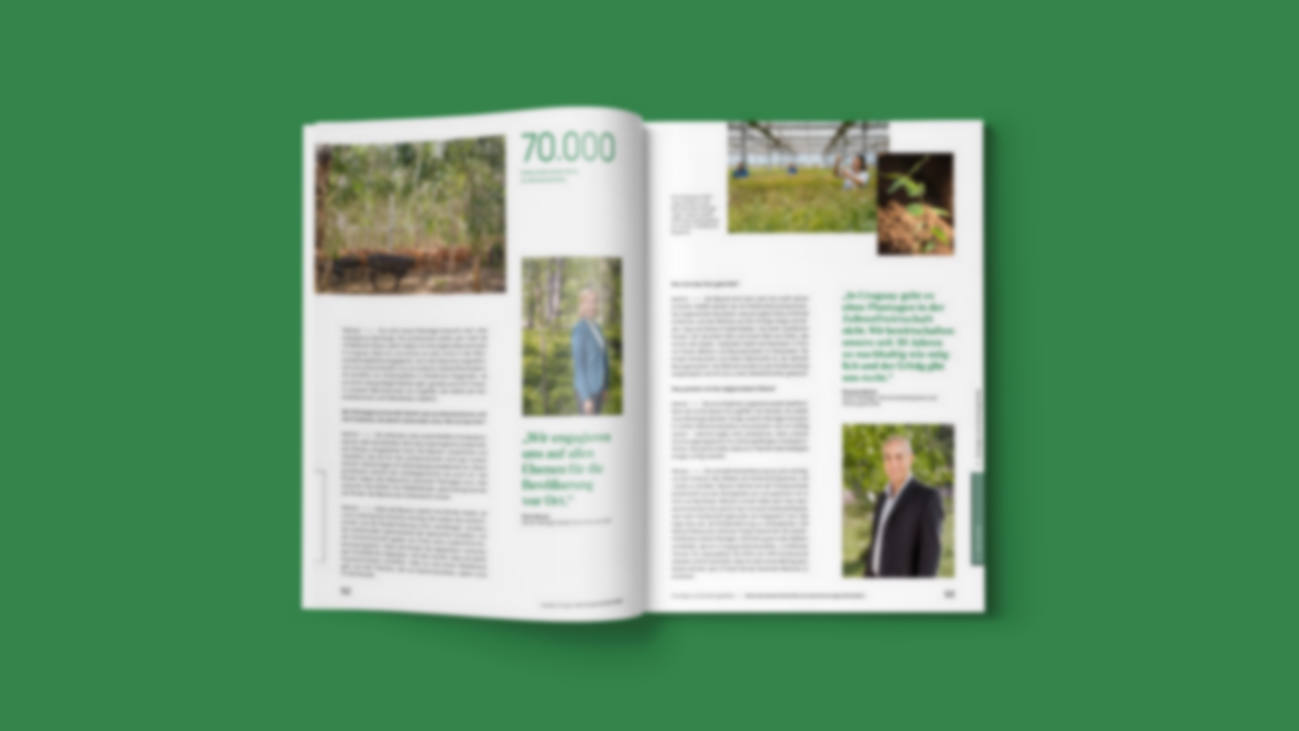 Den Nachhaltigkeitsbericht 2023 haben wir gestalterisch an den Geschäftsbericht angelehnt. Mit einer frischen Typografie, mutigen Farben und Fotos, die aus dem Leben gegriffen sind – für Unternehmenskommunikation aus einem Guss.