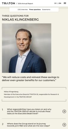 Interaktive Module geben nutzerfreundlich Einblicke in aktuelle Zahlen und bieten einfache Navigationsmöglichkeiten zu vertiefenden Informationen. Das Thema Nachhaltigkeit bekommt nicht nur mit eigenen Modulen auf der Startseite einen prominenteren Platz, sondern auch mit ausführlichen Storys über Kreislaufwirtschaft und alternative Antriebe.