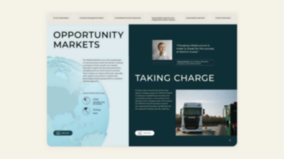 Antriebswende, Digitalisierung, neue Geschäftsmodelle: Der Transportsektor befindet sich im Wandel. Die TRATON GROUP mit ihren starken Marken Scania, MAN, International und Volkswagen Truck & Bus ist ein weltweit führender Hersteller von Nutzfahrzeugen, der die nachhaltige Transformation der Branche maßgeblich vorantreibt – das unterstreicht auch ihr Geschäftsbericht 2024.