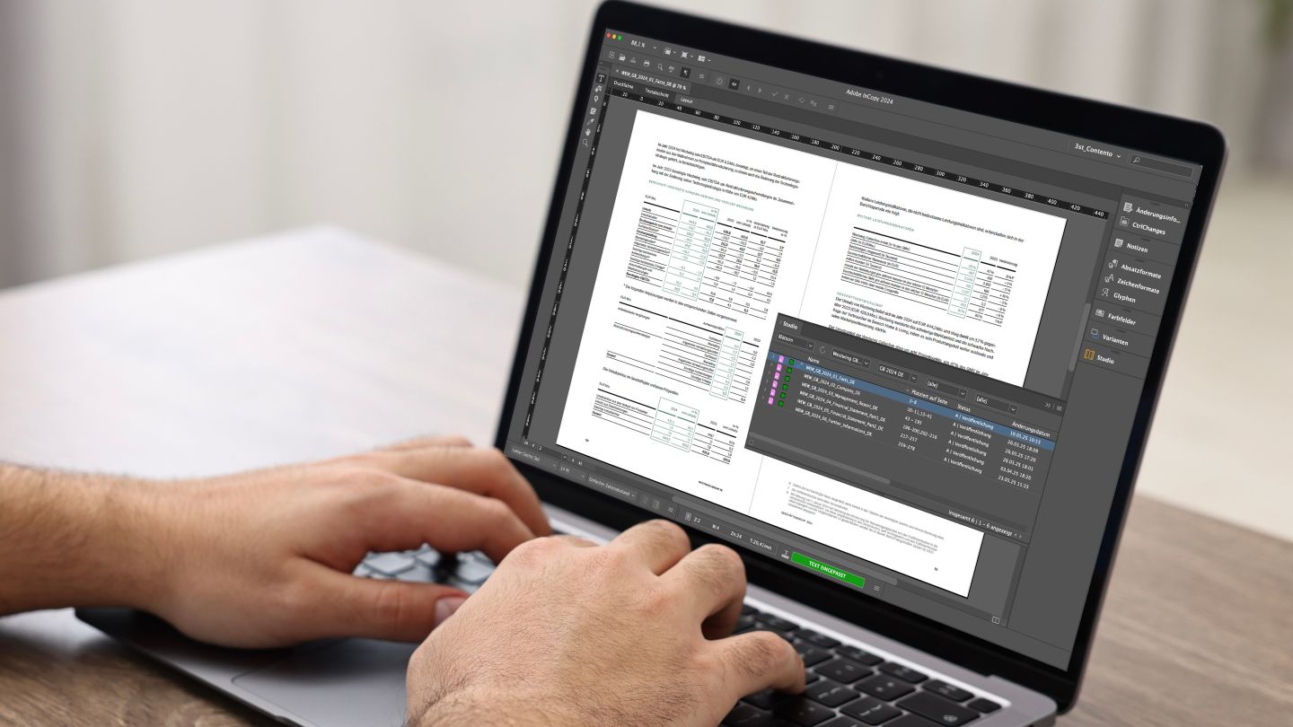 • Komfortable Textbearbeitung direkt im finalen Layout (Adobe InCopy)