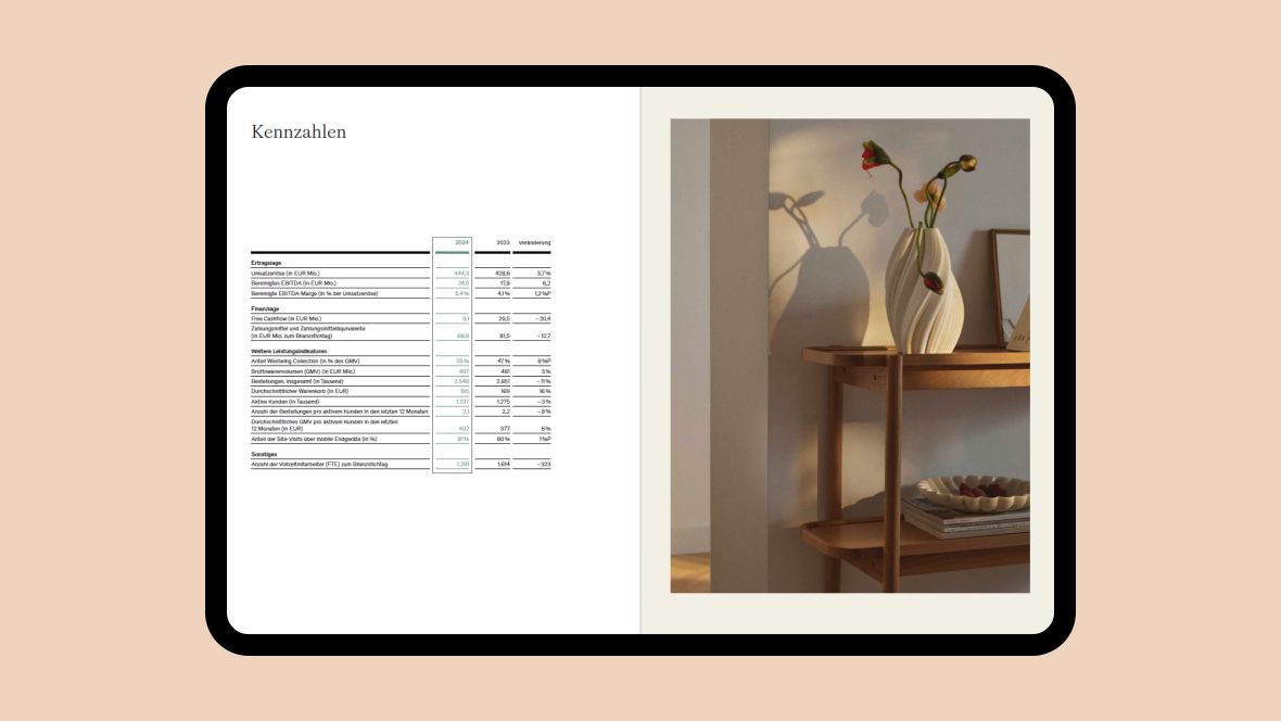 Der Home-&-Living-Spezialist Westwing betreibt eine erfolgreiche E-Commerce-Plattform für Wohnträume und Einrichtungsideen. Dementsprechend stilsicher präsentiert sich auch der Geschäftsbericht. Er entsteht in einem eingespielten Workflow mit unserem Redaktionssystem Contento – wovon beide Seiten profitieren.