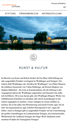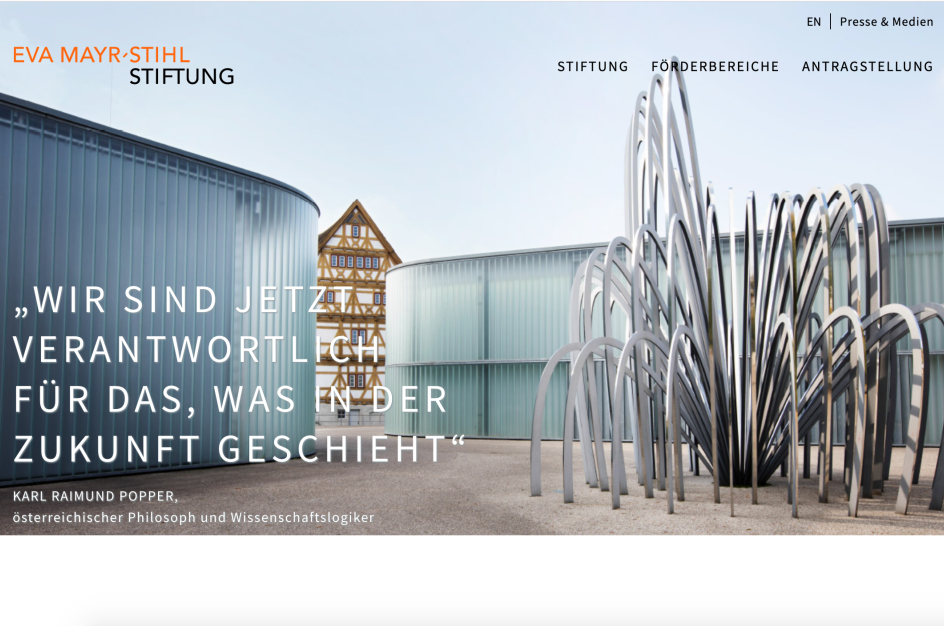 Für eine bessere Welt arbeiten. Das macht die Eva Mayr-Stihl Stiftung, die Projekte aus Wissenschaft, Medizin und Kultur fördert. Dabei setzt sie auf langjährige Partnerschaften, ist aber auch offen für Neues. Für die von uns gestaltete Website haben wir ein Online-Formular programmiert, das mit intelligenten Filterfunktionen und Upload-Optionen Bewerbern die Antragstellung und dem Stiftungsteam das Bearbeiten erleichtert.