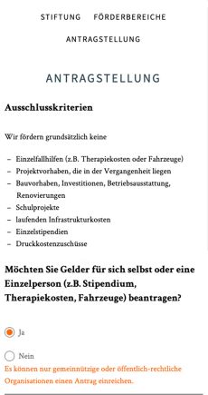 Per Online-Formular lässt sich schnell herausfinden, ob ein Projekt zu den Förderthemen der Stiftung passt.