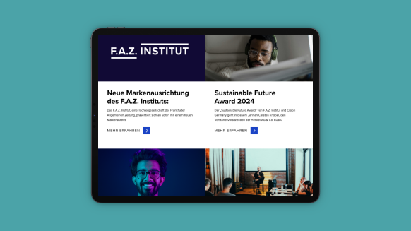 Das F.A.Z. Institut ermöglicht mit Analysen und Beratung seit Jahrzehnten zielgruppengenaue Kommunikation für Unternehmen. In der aktuellen Strategie richtet sich die Marke noch klarer aus. Wir unterstützen den Prozess mit neuen Designprinzipien samt angepasstem Logo, damit sich das Institut auf allen Kanälen zukunftssicher positionieren kann.