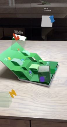 Der Clou des Printreports steckt im Inhaltsverzeichnis: Durch Stanzungen und Falzungen entfalten sich kleine physische Räume, die unser Key Visual, den Kubus, andeuten. Die sechs Stories werden angeteasert und sind über QR-Codes vollständig online erlebbar. Wem das nicht reicht, der greift zum Smartphone und erweitert, ebenfalls per QR-Code, den „Freiraum“ mit Augmented Reality.