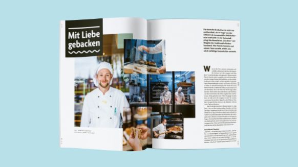 The magazine title "AUTO STADT & LEBEN" sets the tone for the sections. In graphically individually prepared stories, the focus is on the mobility of the future, the city of tomorrow, culture and sustainable cuisine.