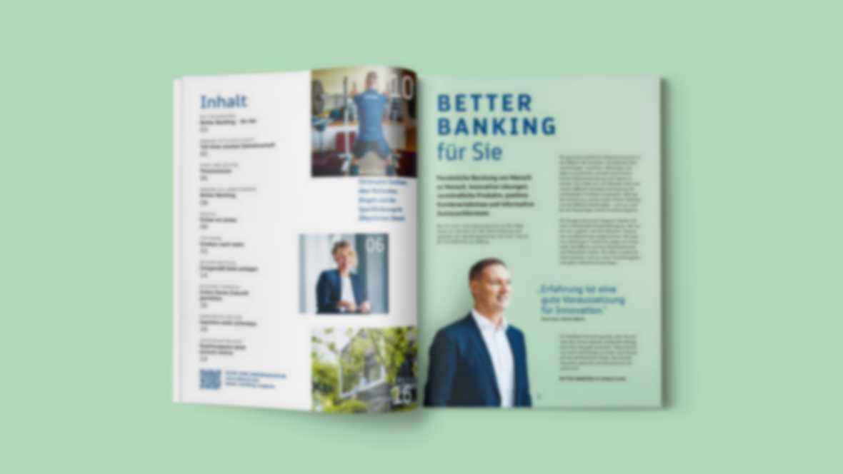 Im Bereich Kundenkommunikation informiert das neue Better Banking-Magazin über Produkte, Werte und Neuigkeiten und verknüpft diesen Content mit Geschichten von Kunden und Mitarbeitern.