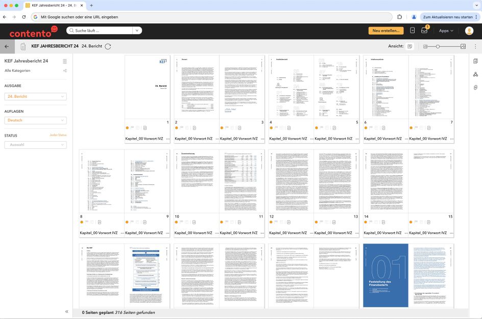 Decentralized content maintenance and an efficient layout process were at the top of KEF's wish list. After all, a team of more than 30 editors at 16 different locations compiles data to create the report. Thanks to Contento's sophisticated user rights system, we were able to customize the workflow for this process. This means that the different users can access the content according to the guidelines of the central office in Mainz.