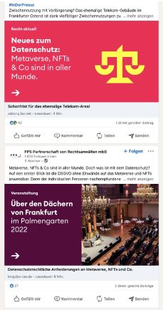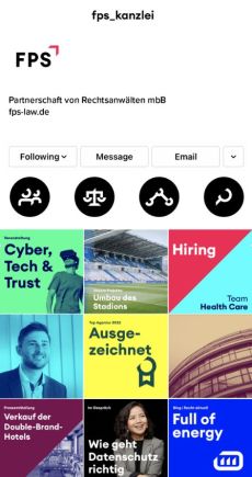 The concise and colorful design positions FPS as an innovative and personal brand with a diverse focus and thus clearly distinguishes itself from the classic image of a lawyer.