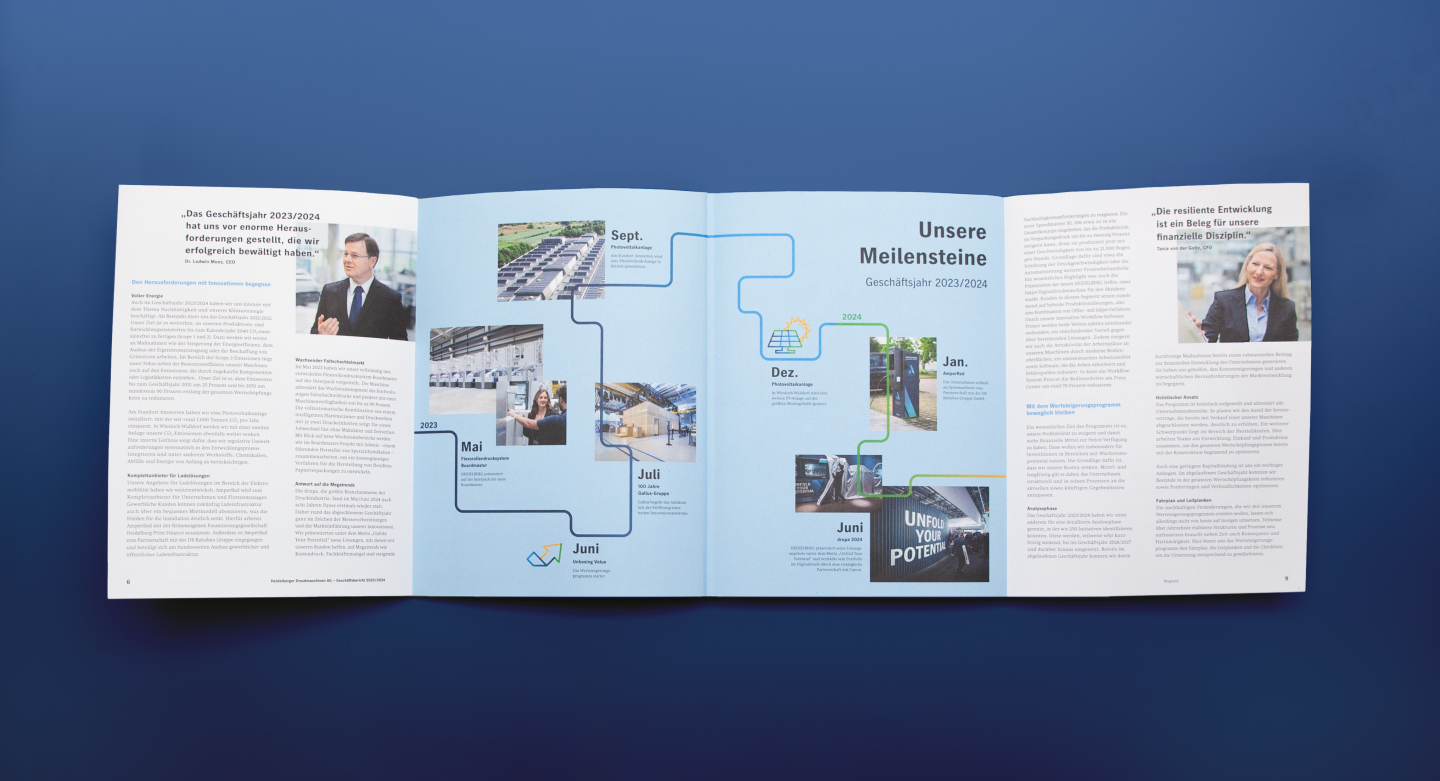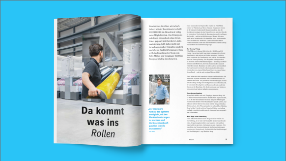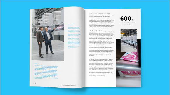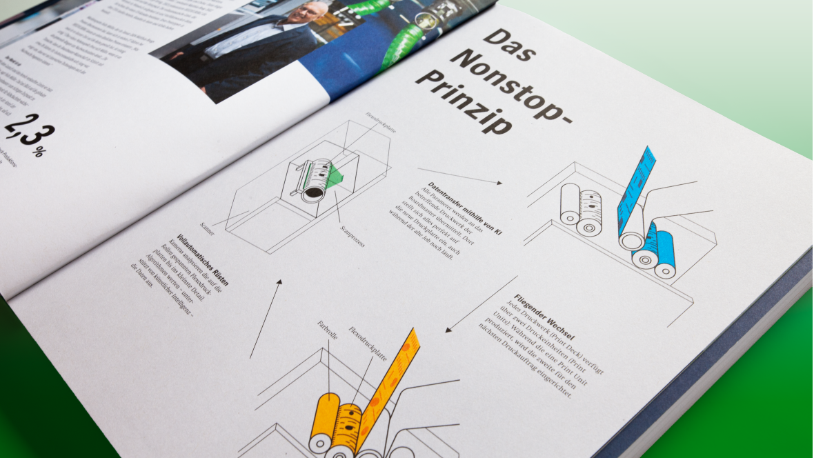Printing presses are inconspicuous giants at first glance. How perfectly they are adapted to their tasks can only be understood by taking a closer look. This makes the task of explaining their complexity and presenting everything aesthetically all the greater. This is achieved in the story section of the report with crystal-clear colors, reportage-style photos and large infographics. Heidelberg set up its own workflow with 3st for the management report and consolidated financial statements sections. Data handling is automated using the Workiva software and an InDesign interface.