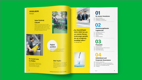 With 175 years of experience, the HEIDELBERG Group is one of the global market leaders in offset printing. But the printing market is changing rapidly. HEIDELBERG is seizing the opportunities, tapping into new markets in packaging printing and developing digital and hybrid solutions for highly automated and AI-controlled production processes. Plenty of material for good change stories. They can all be found in the annual report.