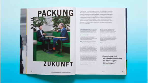 Lovers of printed products will notice: recycled paper and thread stitching ensure perfect impact behavior - not only in board interviews.