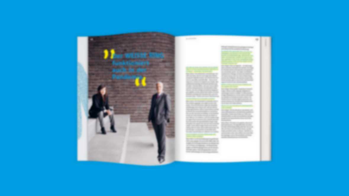 Free of drama and sensationalism: The language, content, design and typography of the WEISSER RING focus on clarity and authenticity. This attitude is reflected in the corporate design and in all the media we have created for the association and foundation. These include the annual report, the chronicle "Ehrenhelfer" on the occasion of the 40th anniversary, the member magazine "Forum Opferhilfe", an inheritance brochure and the technically highly complex website.