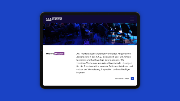 Das F.A.Z. Institut ermöglicht mit Analysen und Beratung seit Jahrzehnten zielgruppengenaue Kommunikation für Unternehmen. In der aktuellen Strategie richtet sich die Marke noch klarer aus. Wir unterstützen den Prozess mit neuen Designprinzipien samt angepasstem Logo, damit sich das Institut auf allen Kanälen zukunftssicher positionieren kann.