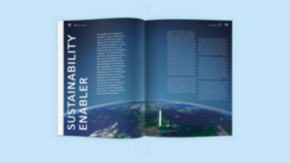 The clear design and distinct imagery visualize the trend of sustainability, while the recurring element of the diagonal shows the emerging and dynamic development.